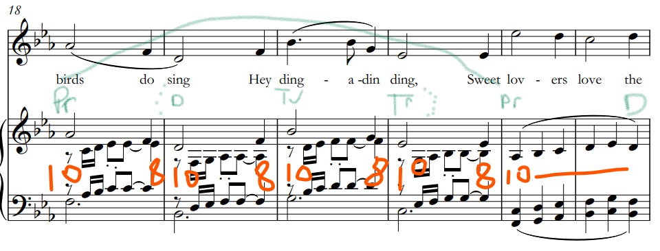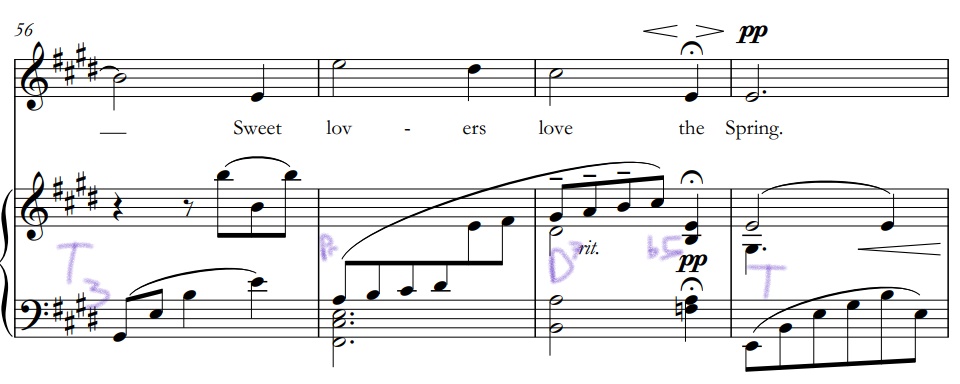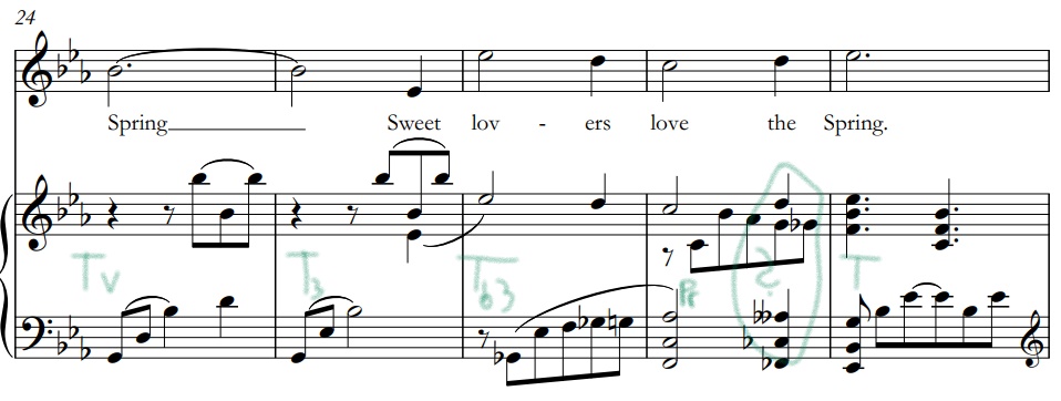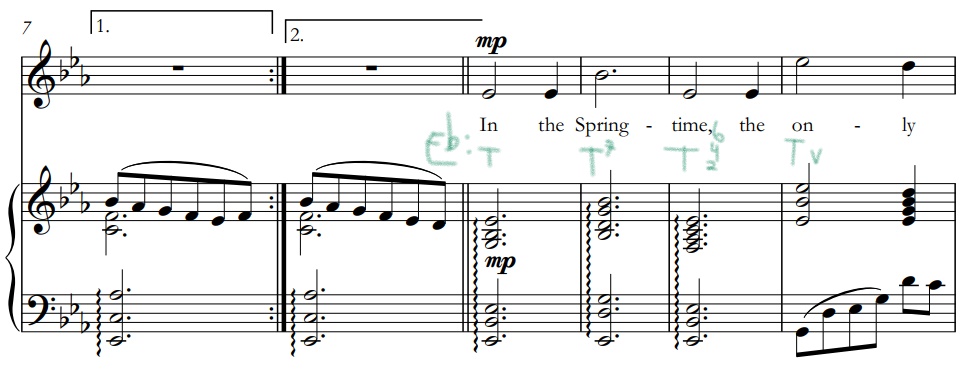 Today’s analysis is a song by Betty Jackson King, “In the Springtime.” Here’s a recording. I have performed this piece as the pianist a couple months ago, and I am also working on the vocal part.