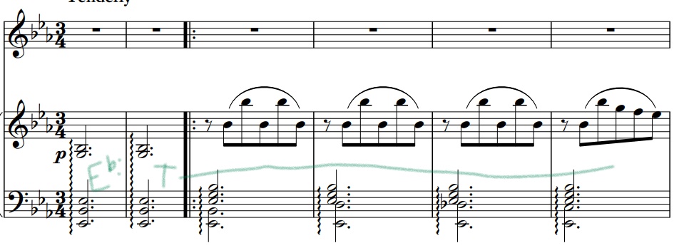 Here we see exactly the same Tonic prolongation as the first time, just in the new key.